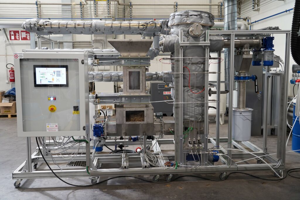 - a 15 kg/h reverse downdraft gasifier, for gasification tests at the pilot-scale,